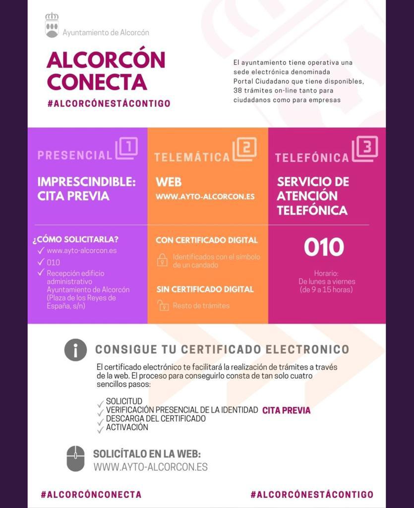 El folleto anuncia tres modos para realizar trámites municipales: presencial con cita previa, telemática y telefónica. La primera de ellas debe realizarse pidiendo cita previa y ésta se puede solicitar por teléfono, en la web municipal o en la recepción del edificio administrativo del Ayuntamiento. La cita previa es la única novedad en este sentido y viene obligada por la fase de vuelta a la normalidad en que se encuentra la Comunidad de Madrid.