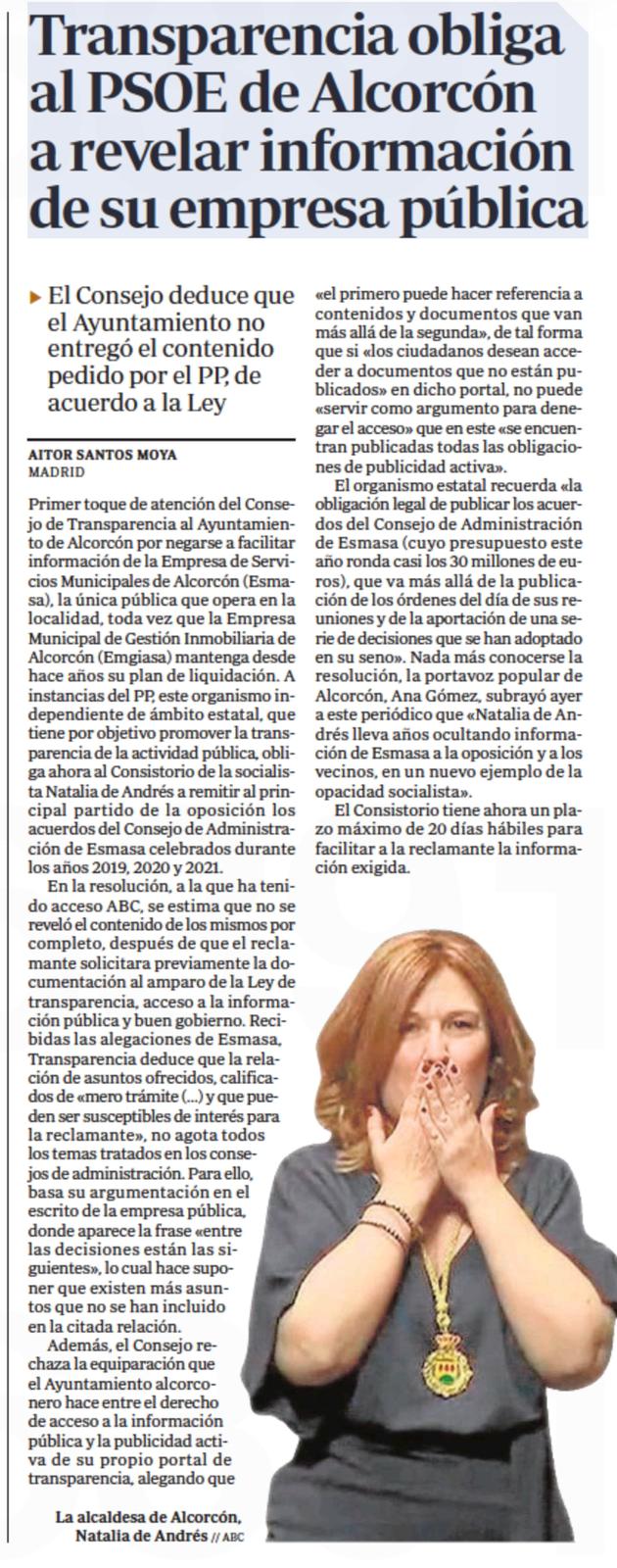 Nuevo varapalo para la Alcaldesa de Alcorcón: obligada a revelar información oculta de Esmasa