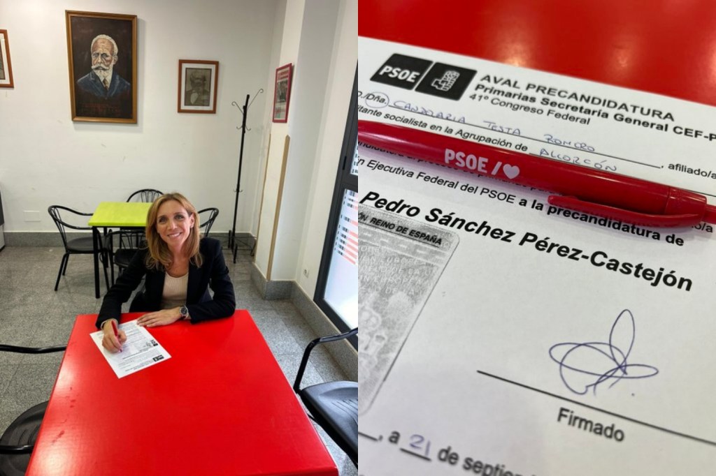 Candelaria Testa firmando el aval a Pedro Sánchez