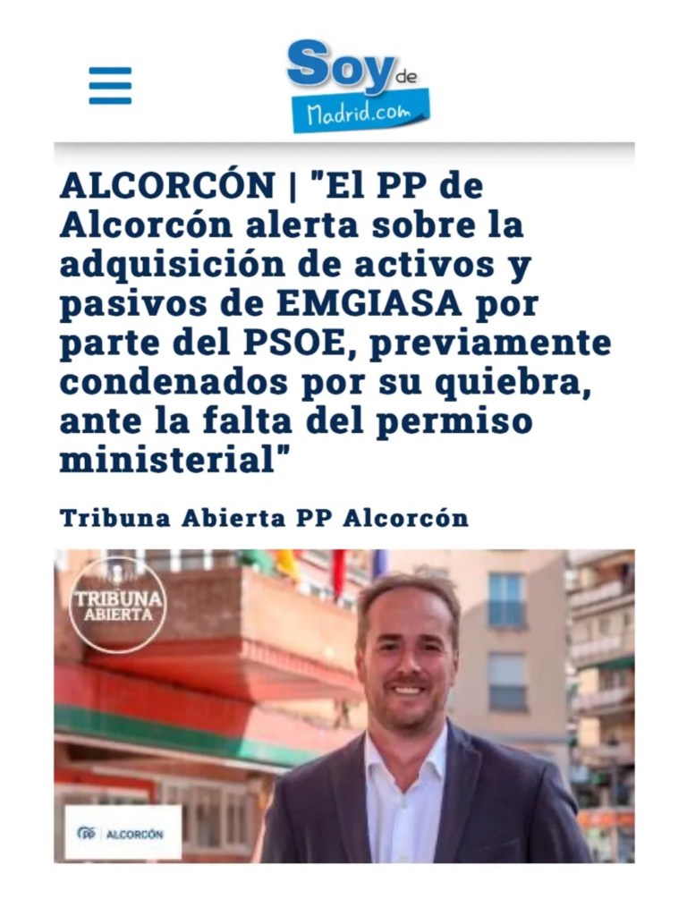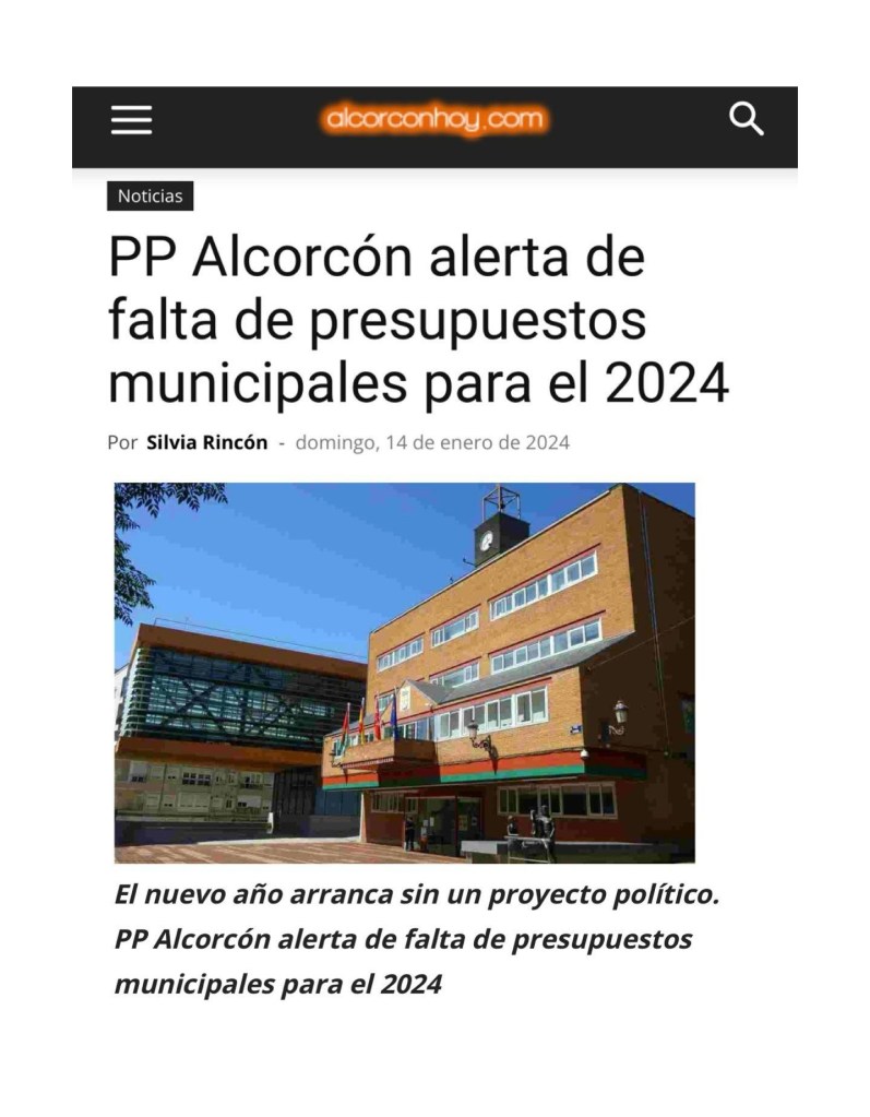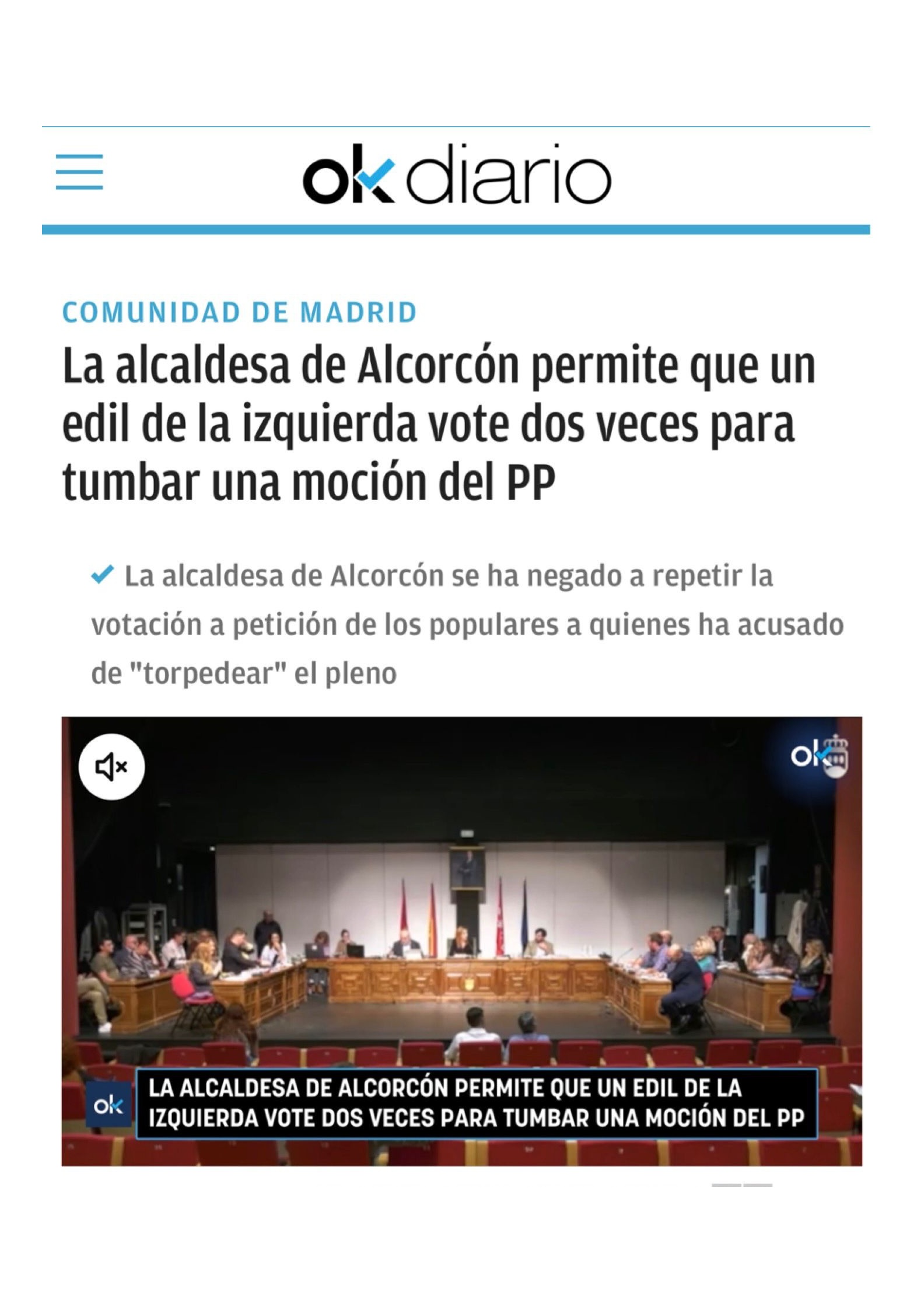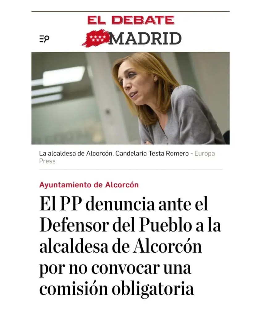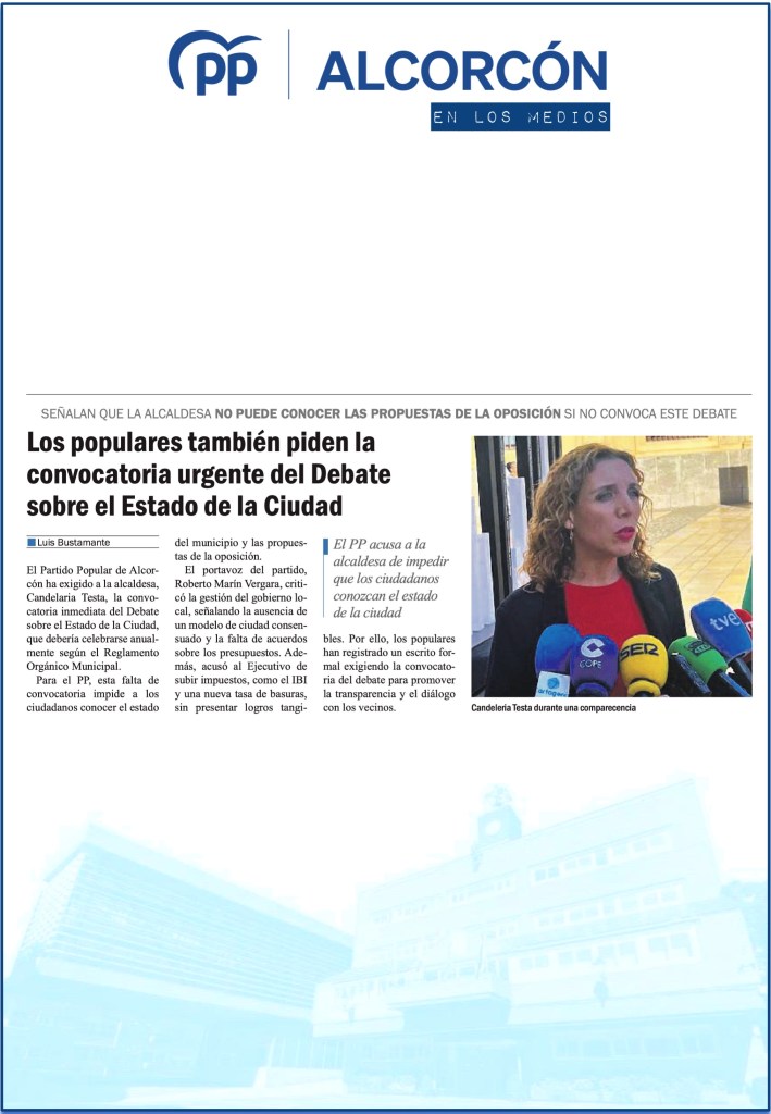 EL PARTIDO POPULAR DE ALCORCÓN EXIGE A LA ALCALDESA LA CONVOCATORIA URGENTE DEL DEBATE SOBRE EL ESTADO DE LA CIUDAD