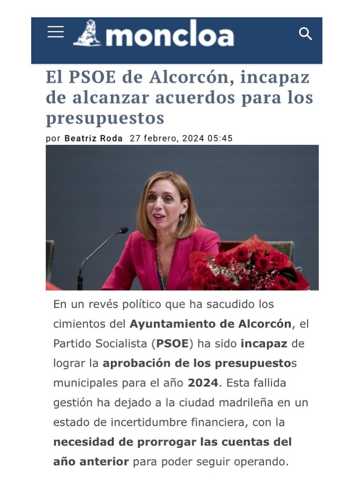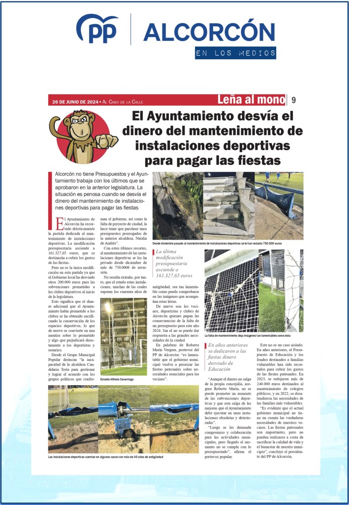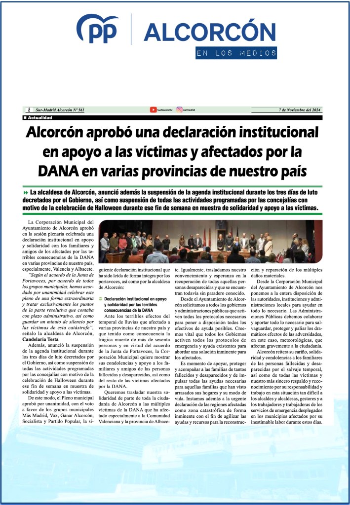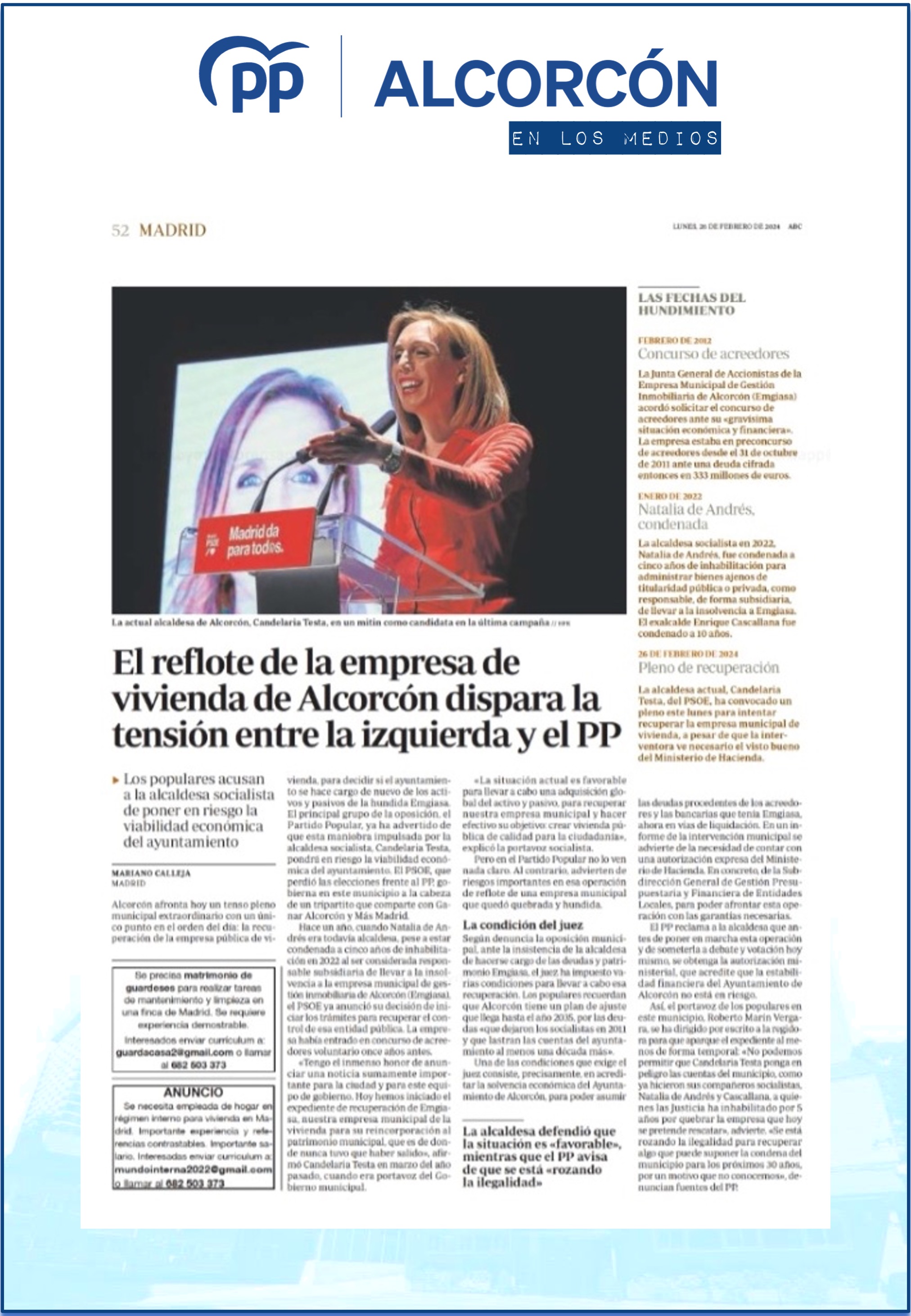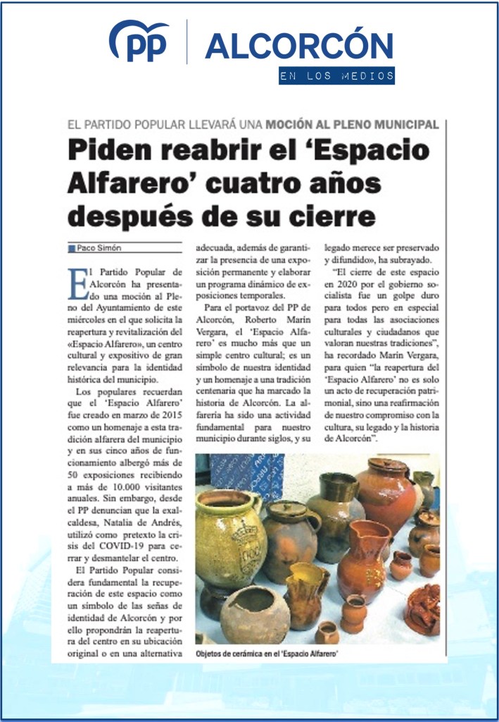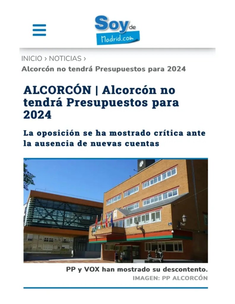 EL PARTIDO POPULAR DE ALCORCÓN EXIGE A LA ALCALDESA LA CONVOCATORIA URGENTE DEL DEBATE SOBRE EL ESTADO DE LA CIUDAD