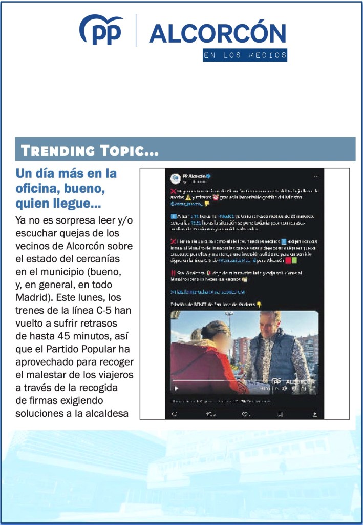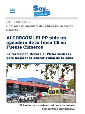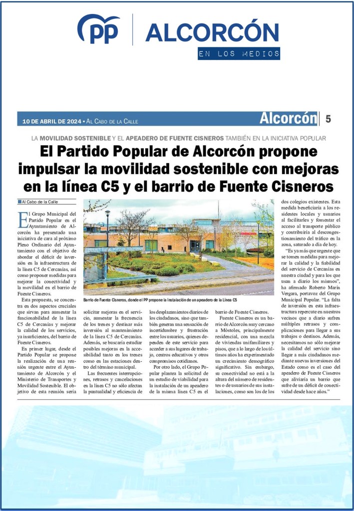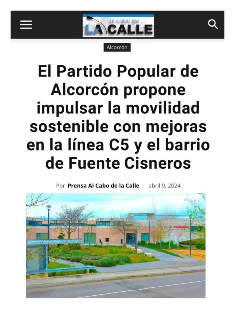 Partido Popular de Alcorcón: impulsando la movilidad sostenible con mejoras en la línea C5 y el barrio de Fuente Cisneros