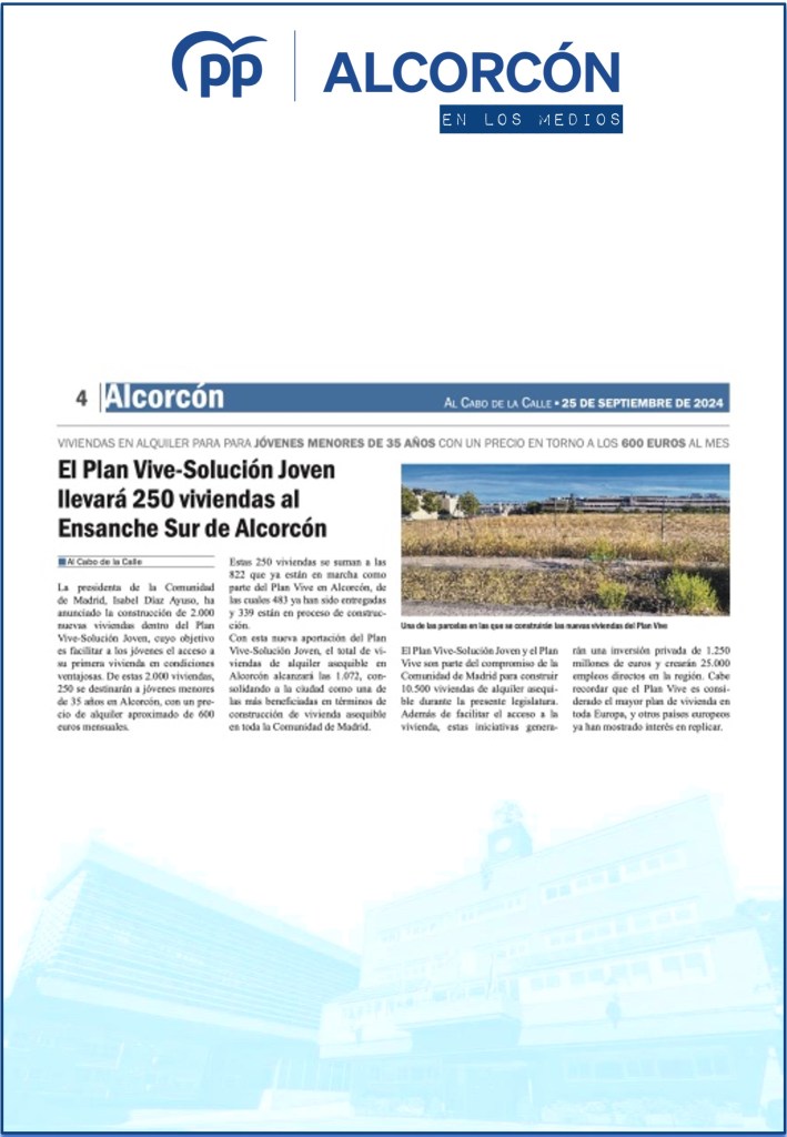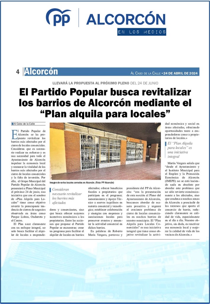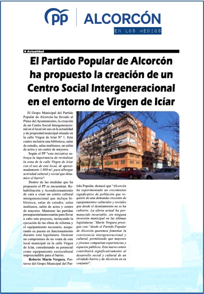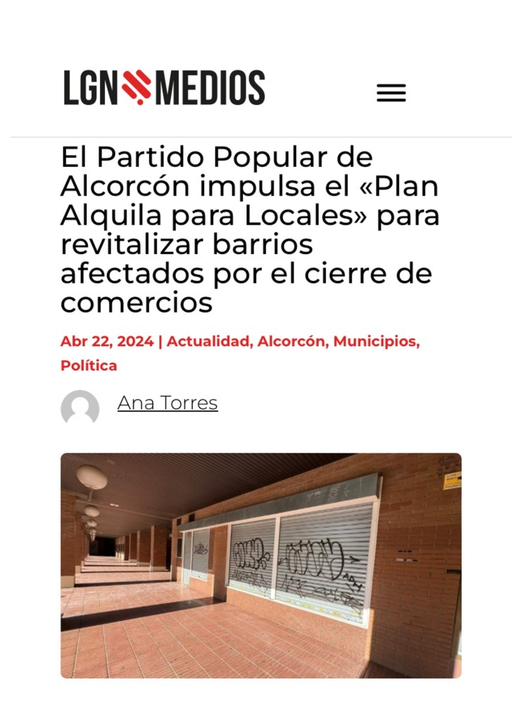 EL PARTIDO POPULAR DE ALCORCÓN PROPONE NUEVAS BASES QUE ASEGUREN LA CESIÓN TRANSPARENTE DE LOS ESPACIOS MUNICIPALES
