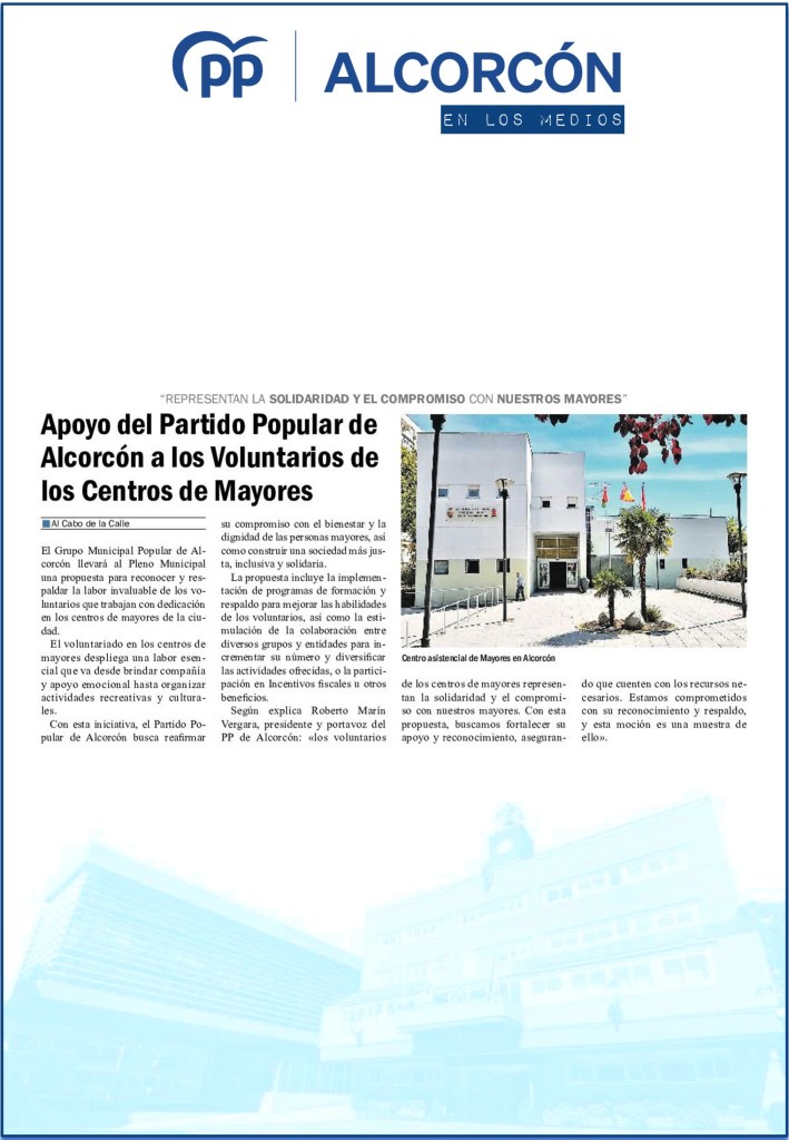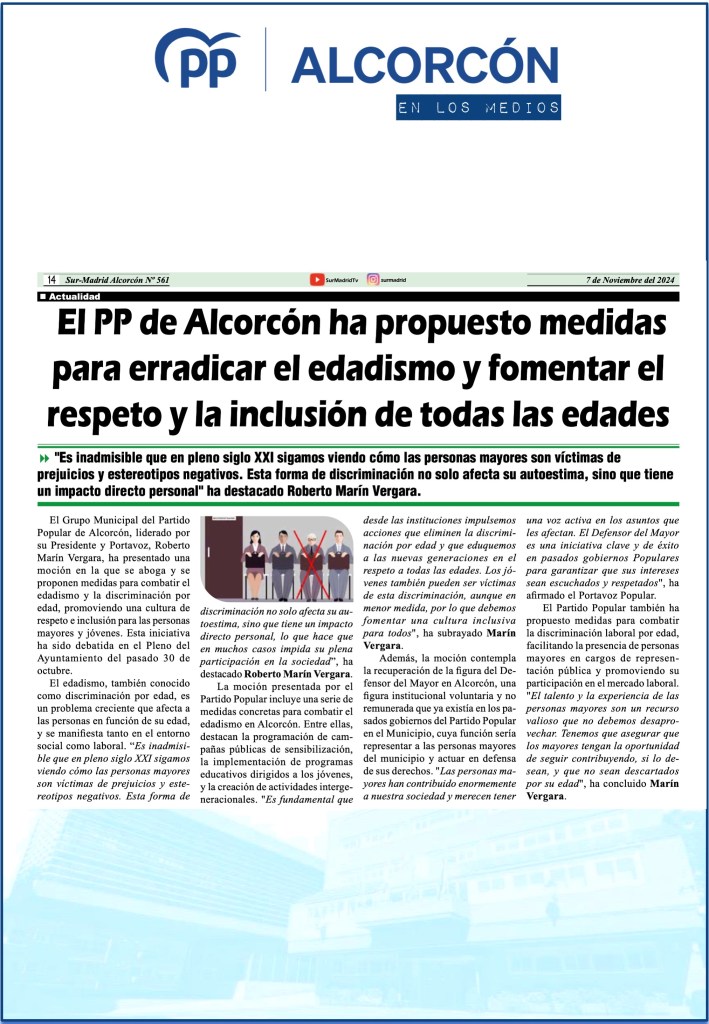 EL PP DE ALCORCÓN PROPONE MEDIDAS PARA ERRADICAR EL EDADISMO Y FOMENTAR EL RESPETO Y LA INCLUSIÓN DE TODAS LAS EDADES