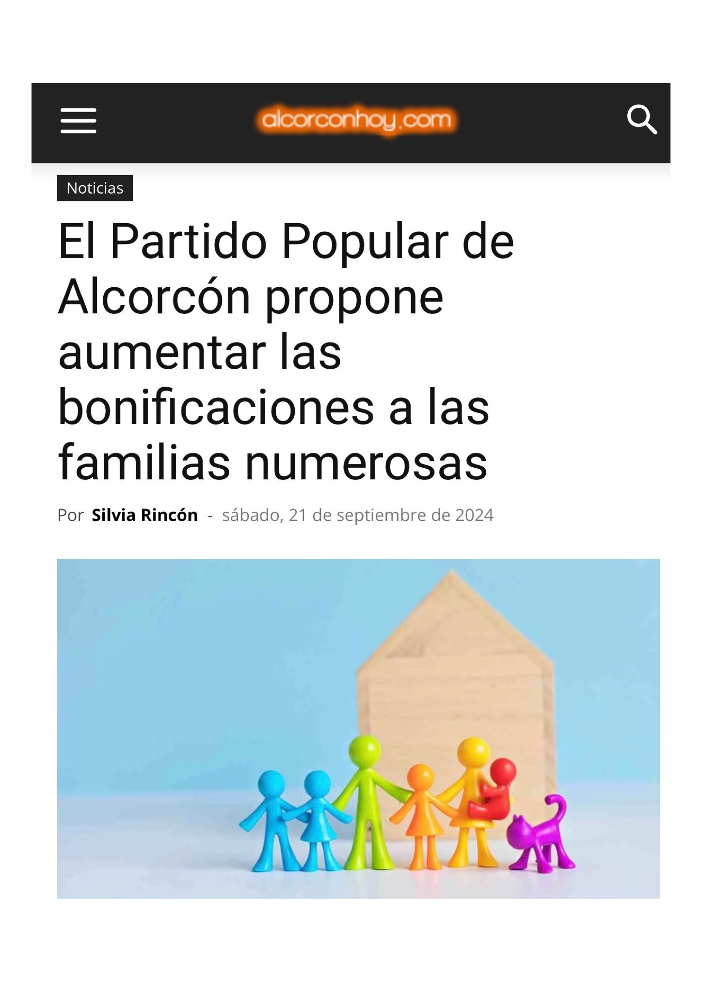 EL PP DE ALCORCÓN PROPONE AUMENTAR LAS BONIFICACIONES DEL IBI A FAMILIAS NUMEROSAS PARA ALIVIAR SU CARGA FISCAL