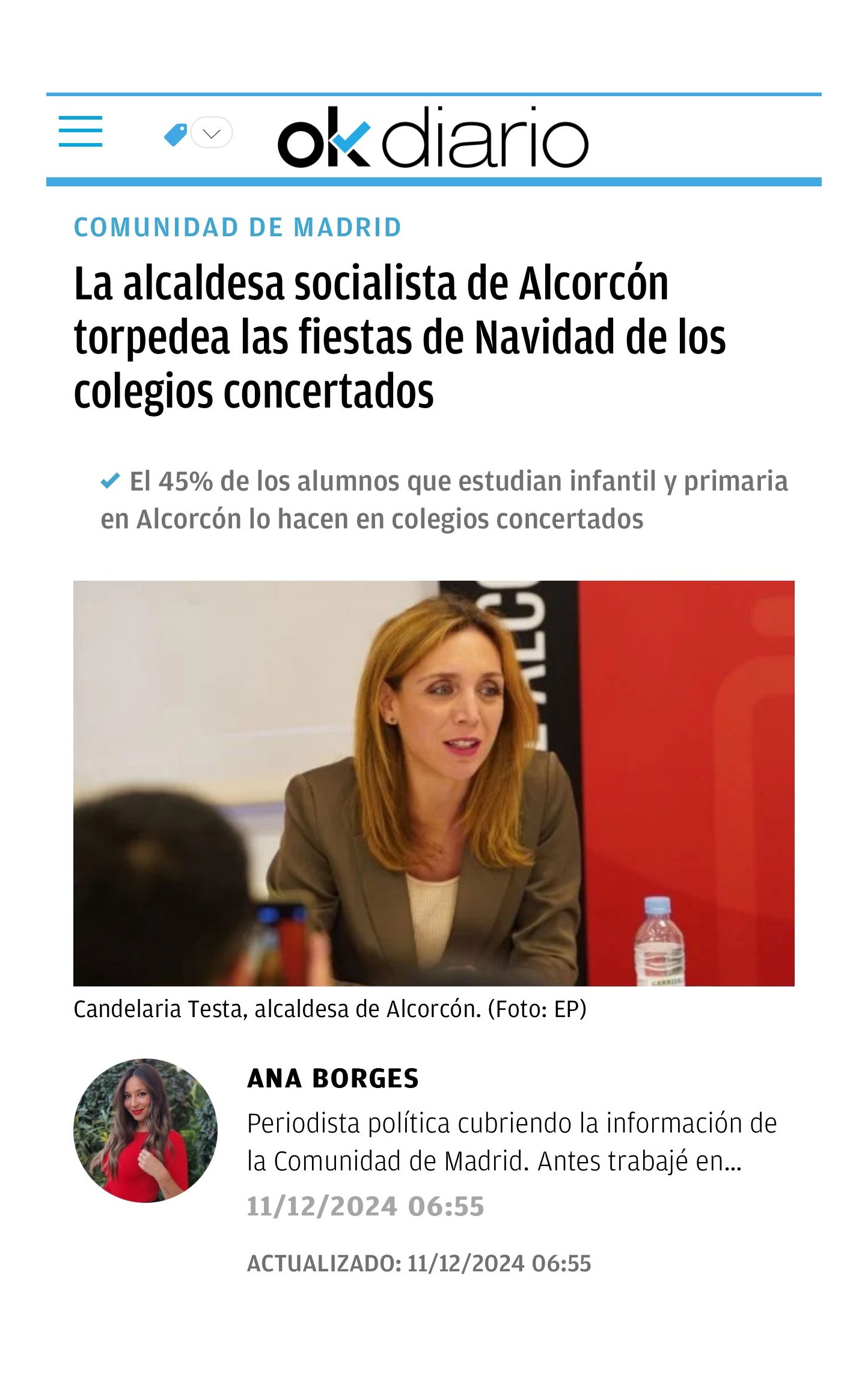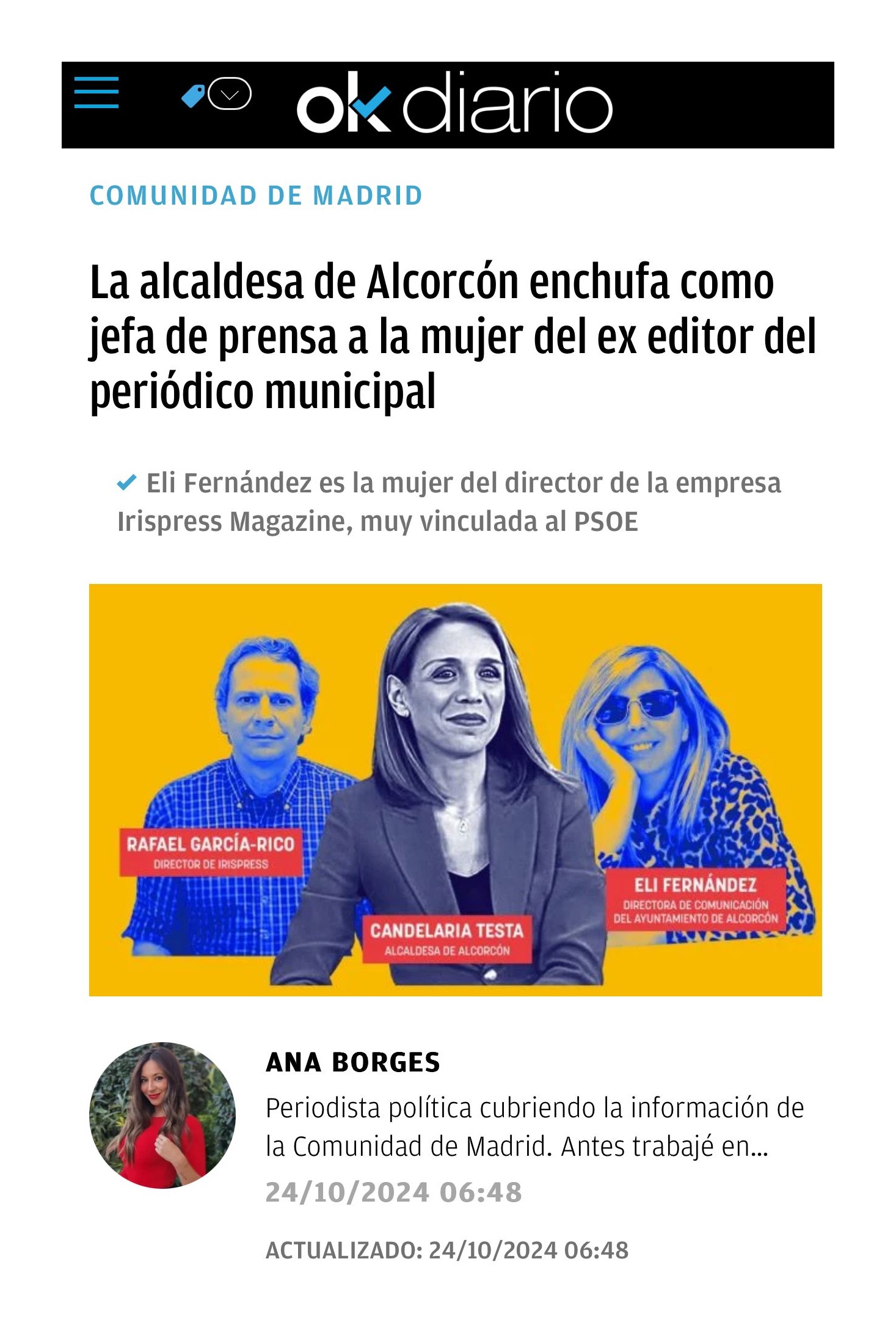 LA ALCALDESA DE ALCORCÓN SE PONE DEL LADO DE SÁNCHEZ Y A FAVOR DE LA TASA DE BASURAS