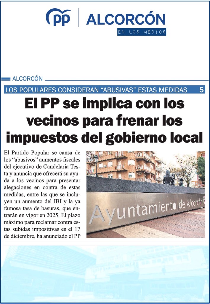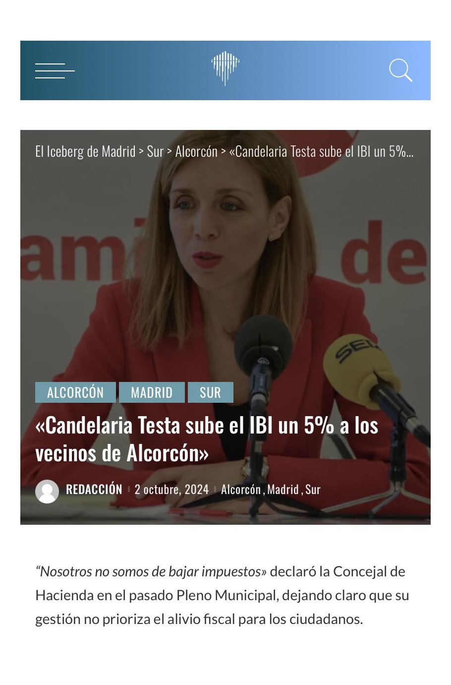 EL GOBIERNO DE CANDELARIA TESTA Y EL «TASAZO» DE PEDRO SÁNCHEZ AHOGAN A LOS VECINOS DE ALCORCÓN A IMPUESTOS