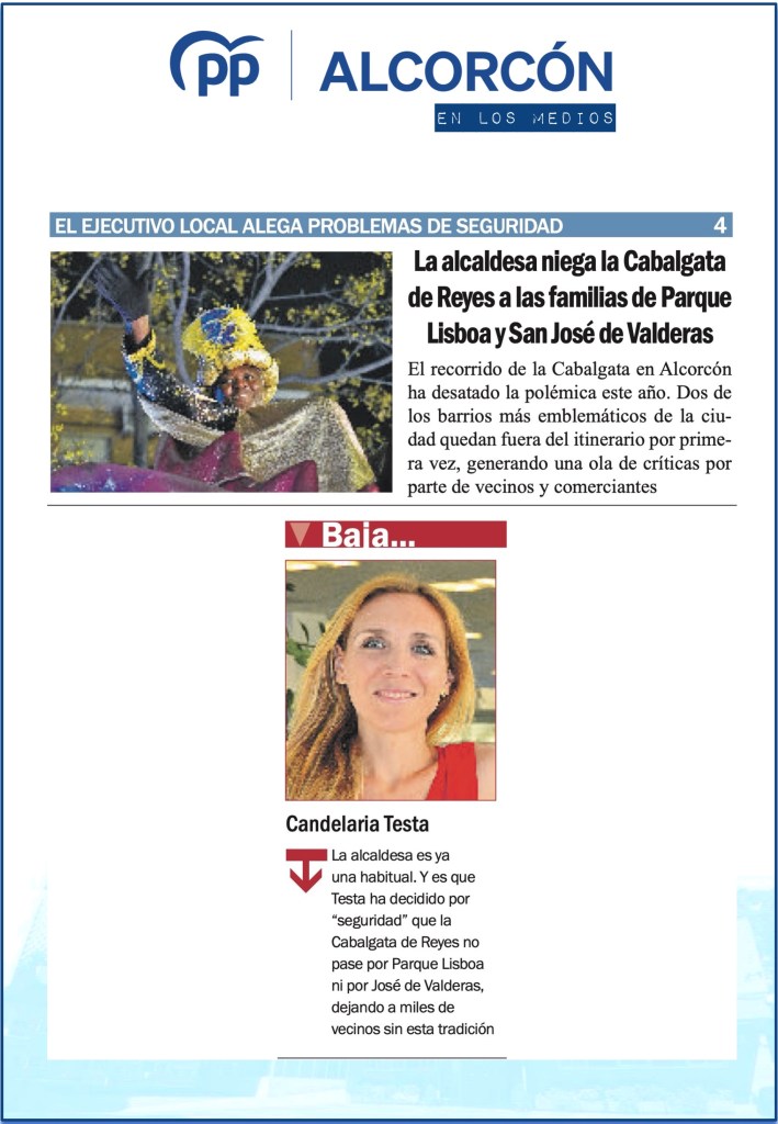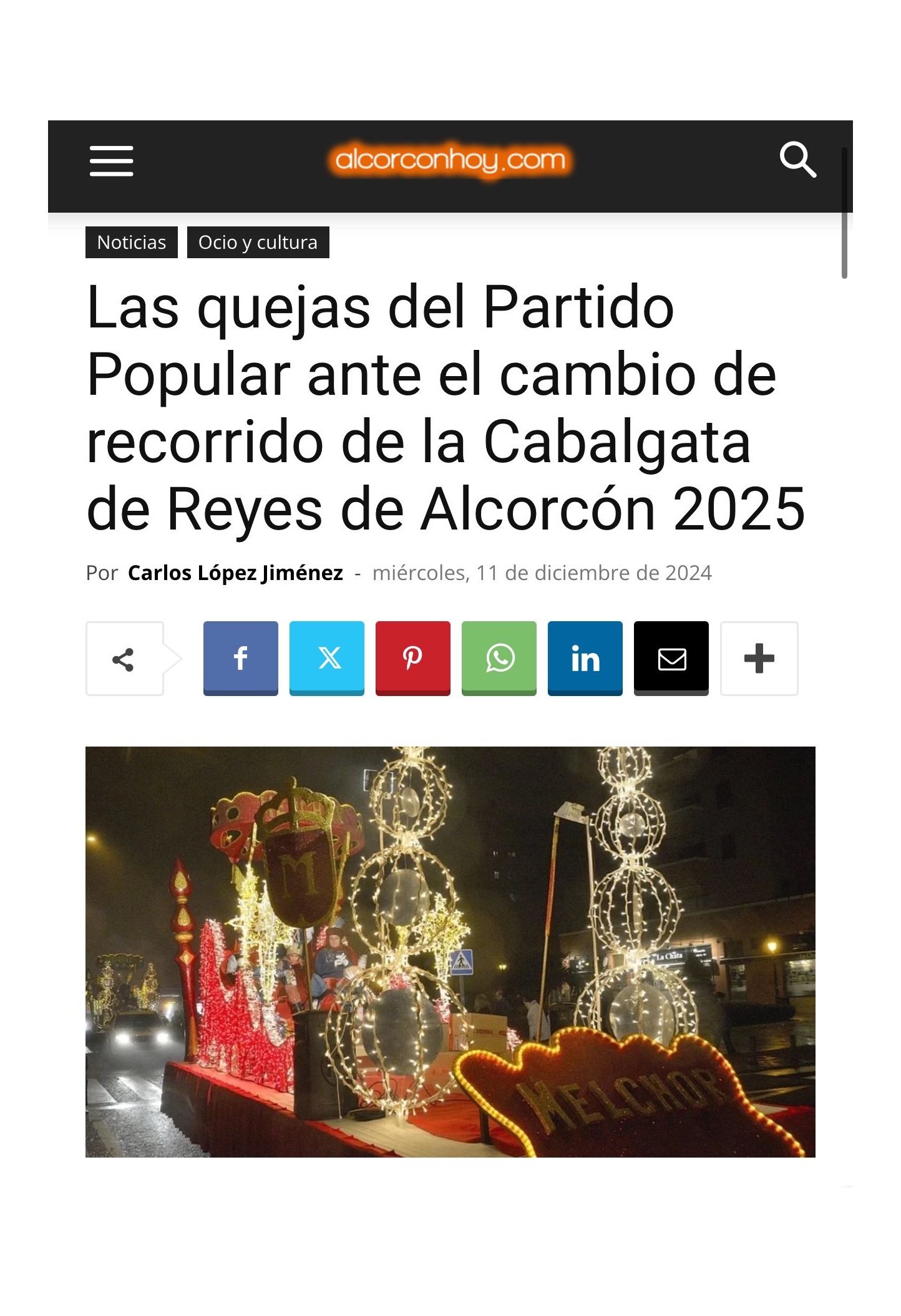 EL PARTIDO POPULAR DE ALCORCÓN EXIGE LA INCLUSIÓN DEL PARQUE DE LISBOA Y SAN JOSÉ DE VALDERAS EN EL RECORRIDO DE LA CABALGATA DE REYES