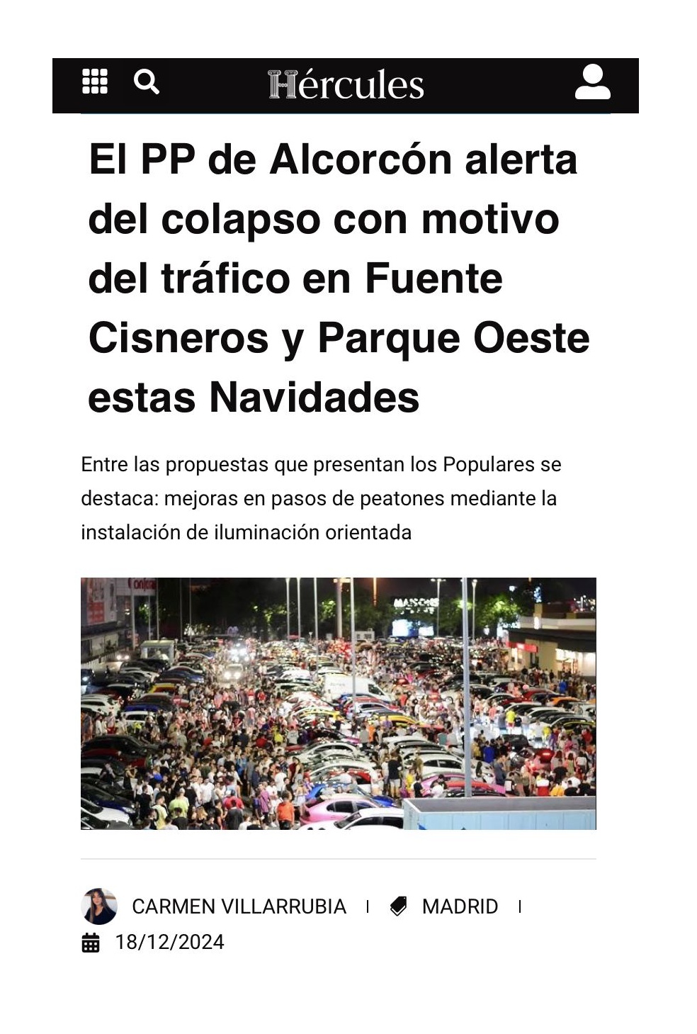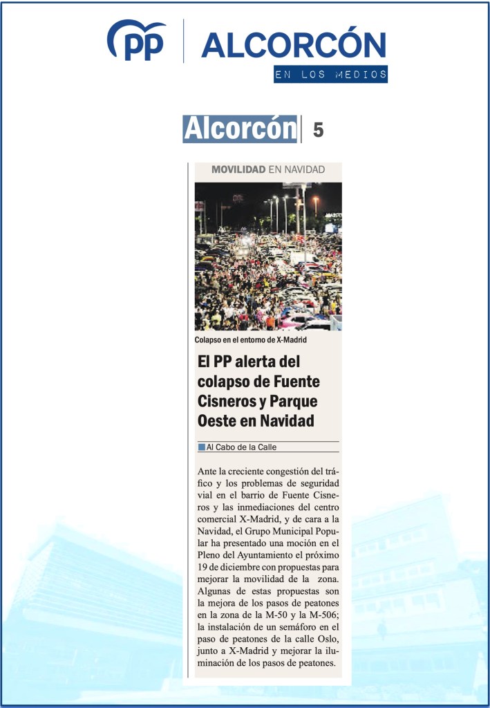 EL PARTIDO POPULAR ALERTA DEL COLAPSO EN LA MOVILIDAD DE FUENTE CISNEROS Y PARQUE OESTE DE CARA A ESTAS NAVIDADES