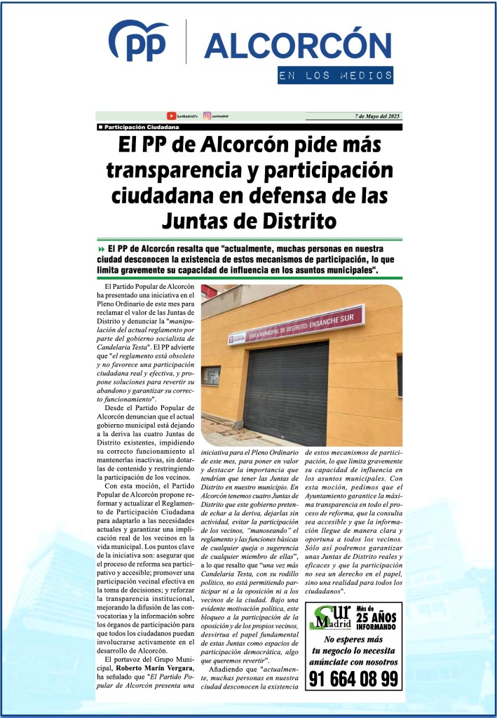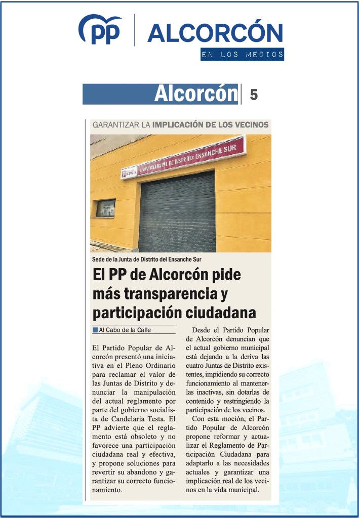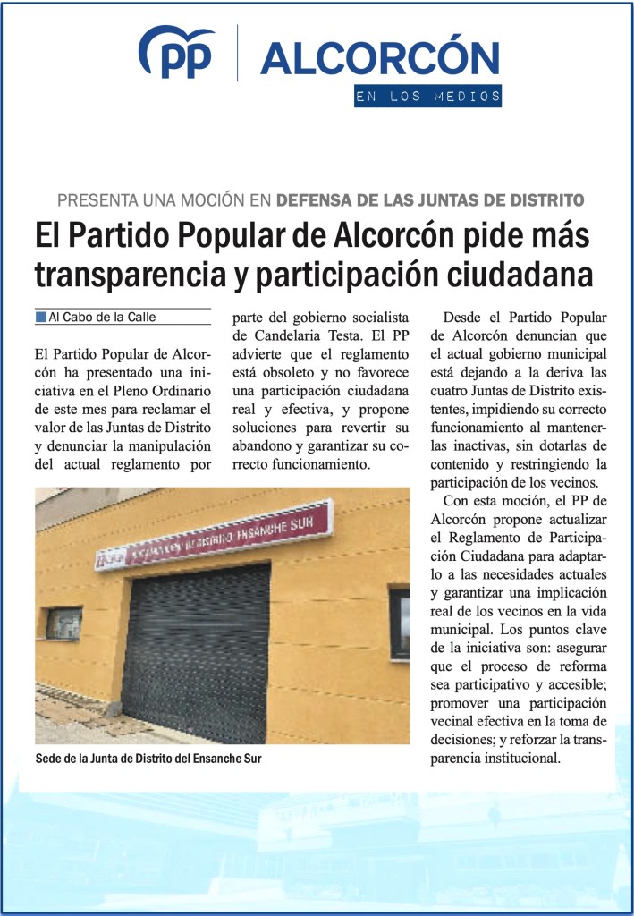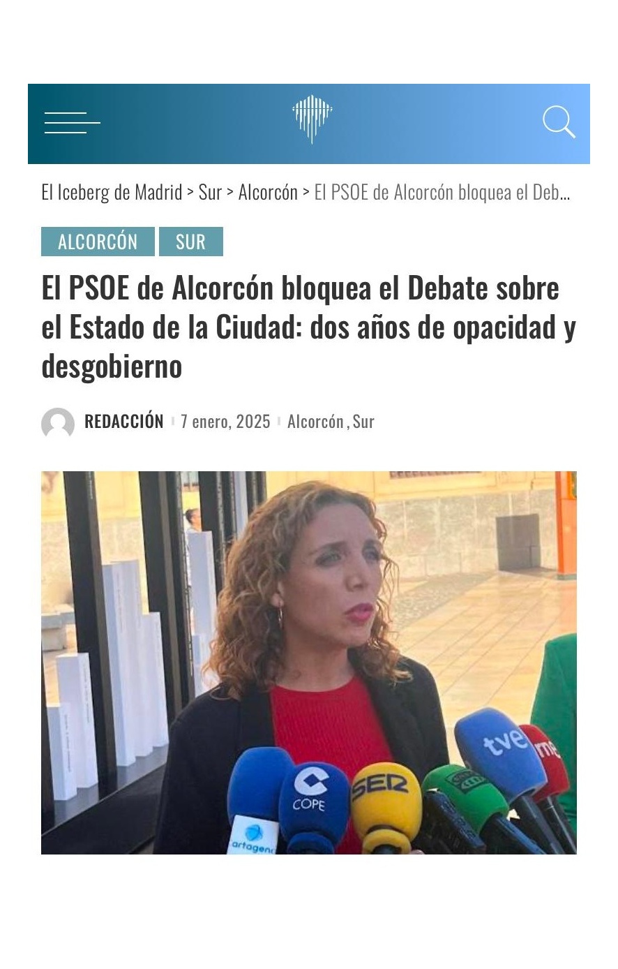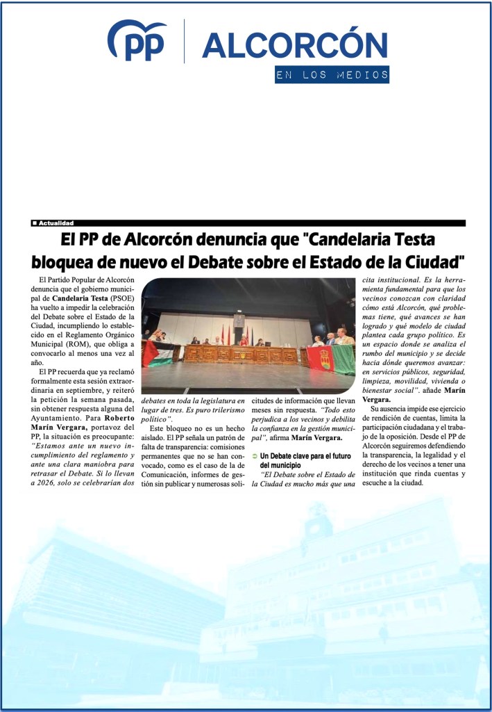 EL PSOE DE ALCORCÓN BLOQUEA EL DEBATE SOBRE EL ESTADO DE LA CIUDAD: DOS AÑOS DE OPACIDAD Y DESGOBIERNO