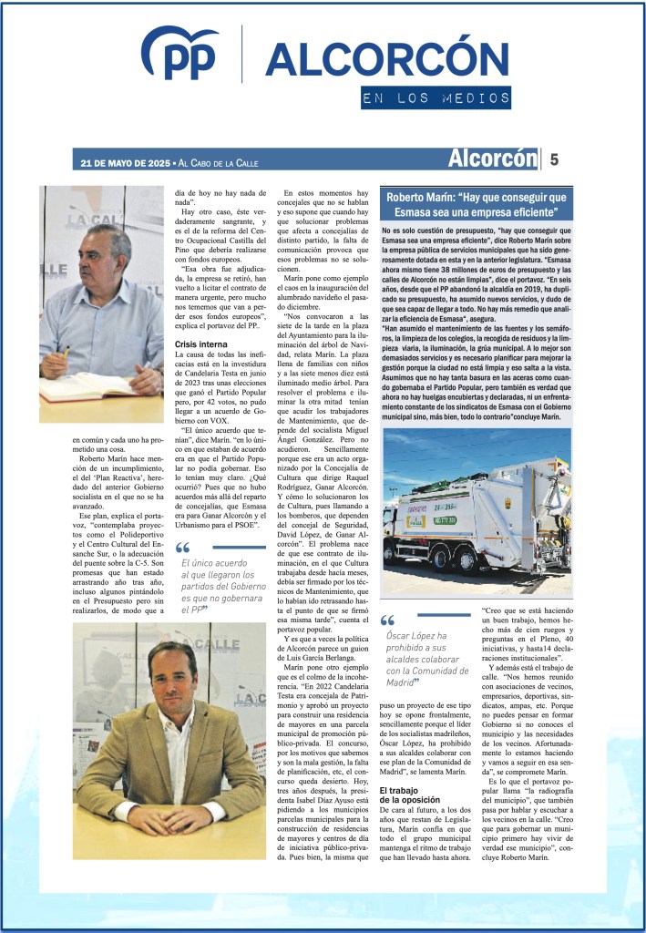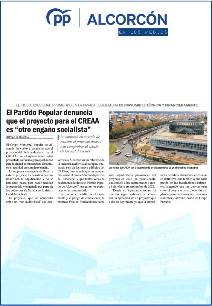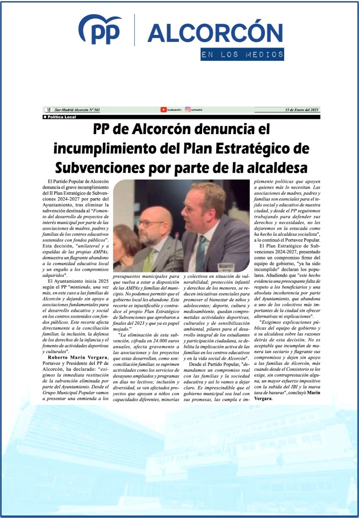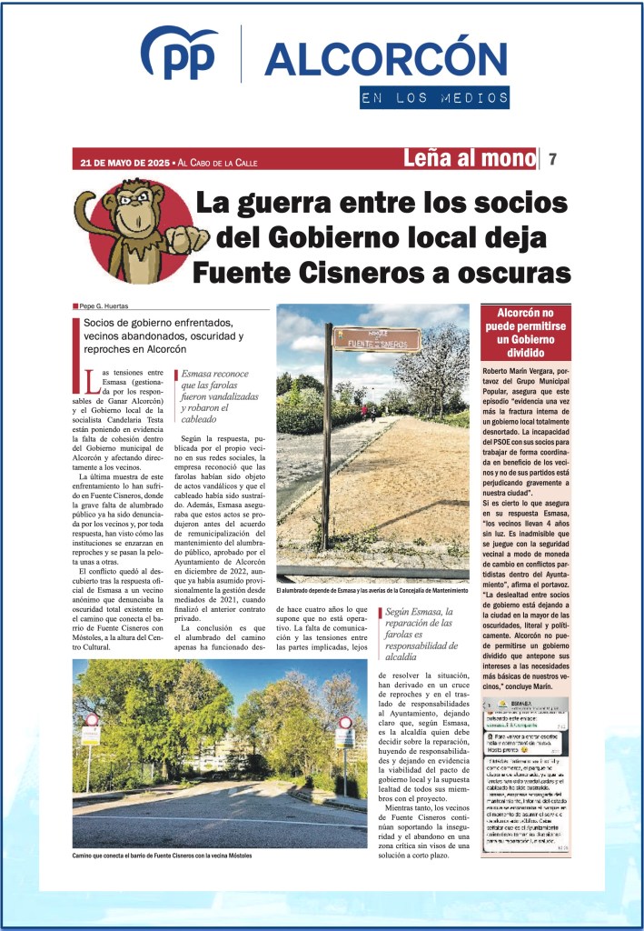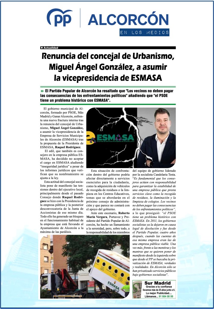 EL PSOE DE ALCORCÓN BLOQUEA EL DEBATE SOBRE EL ESTADO DE LA CIUDAD: DOS AÑOS DE OPACIDAD Y DESGOBIERNO