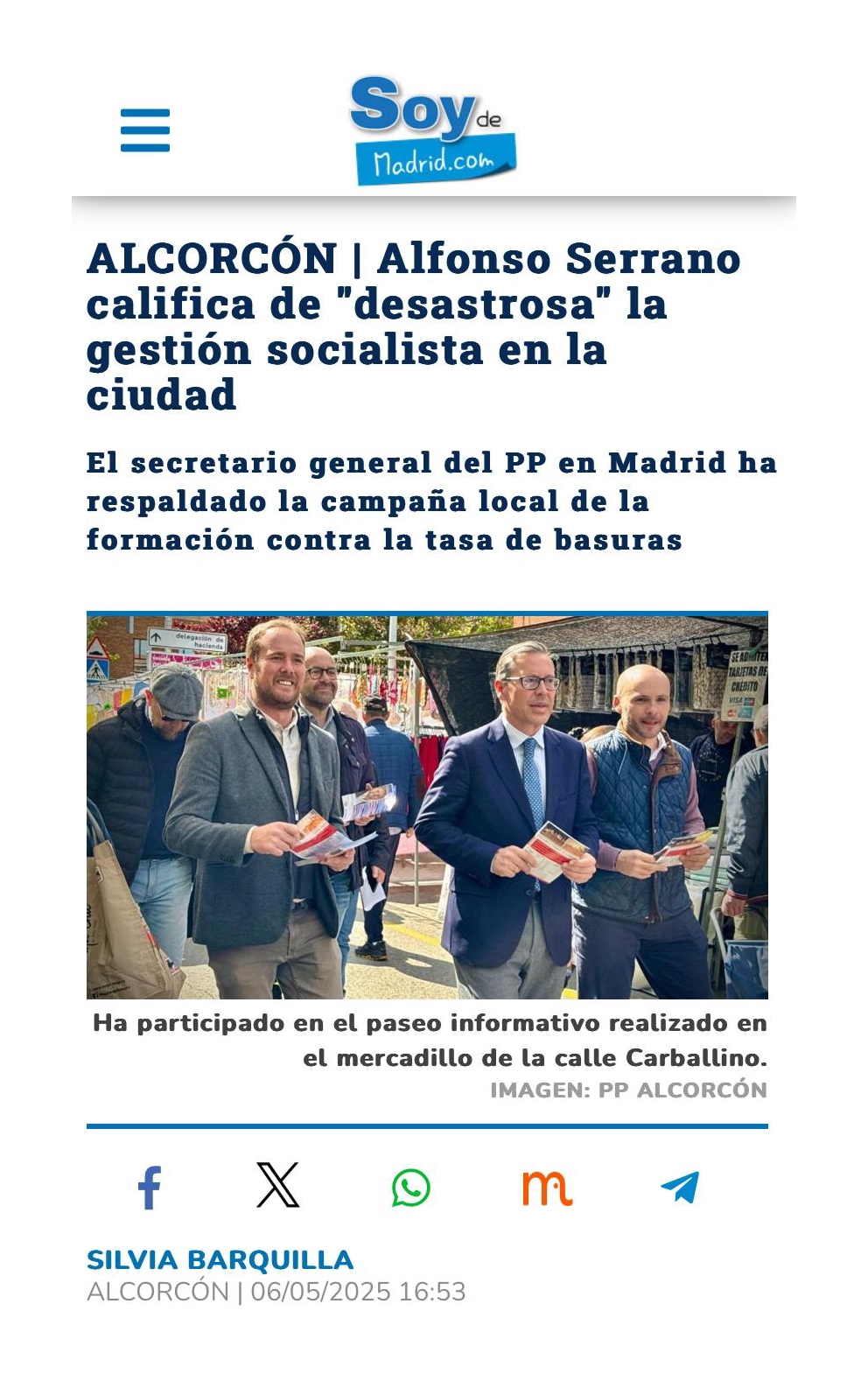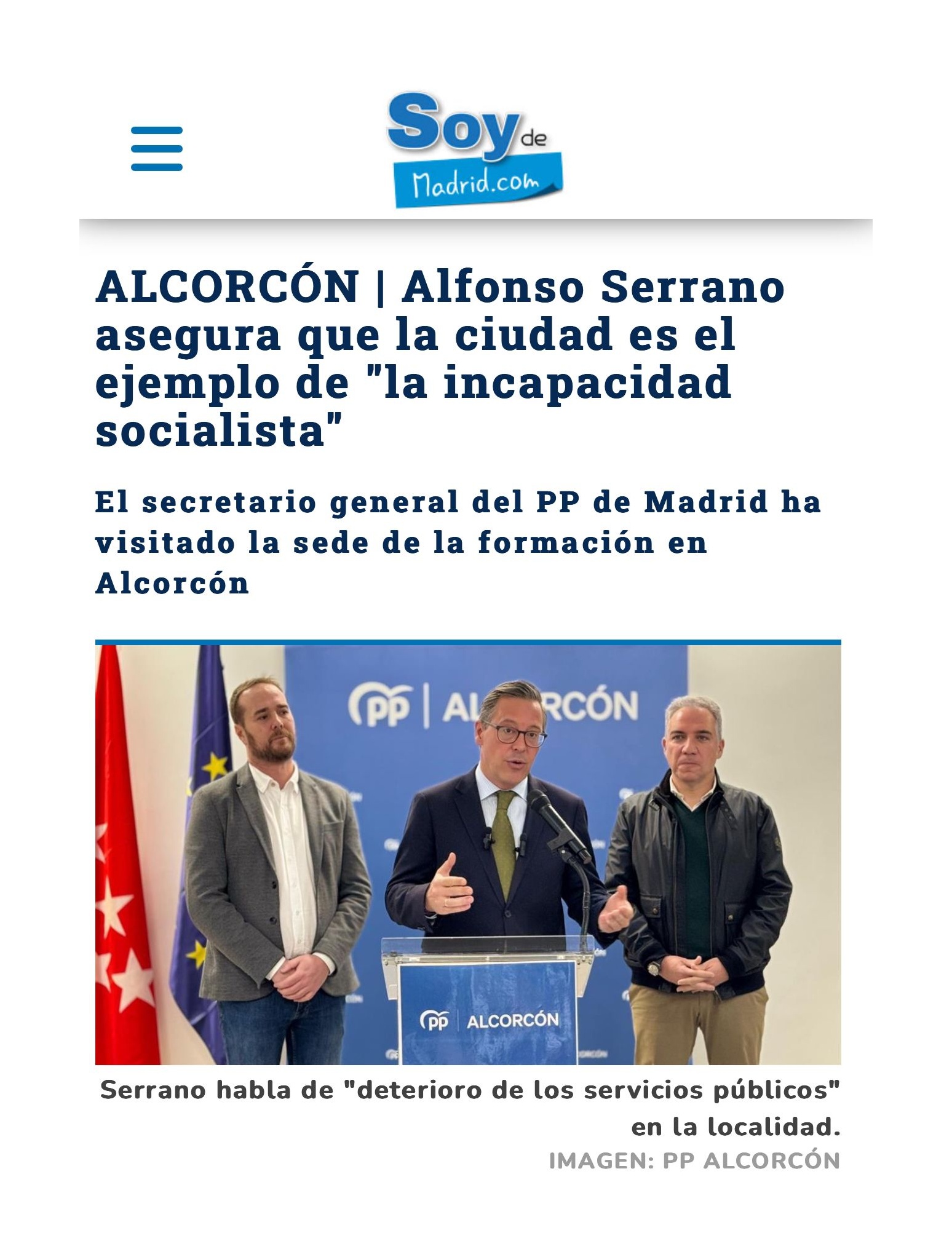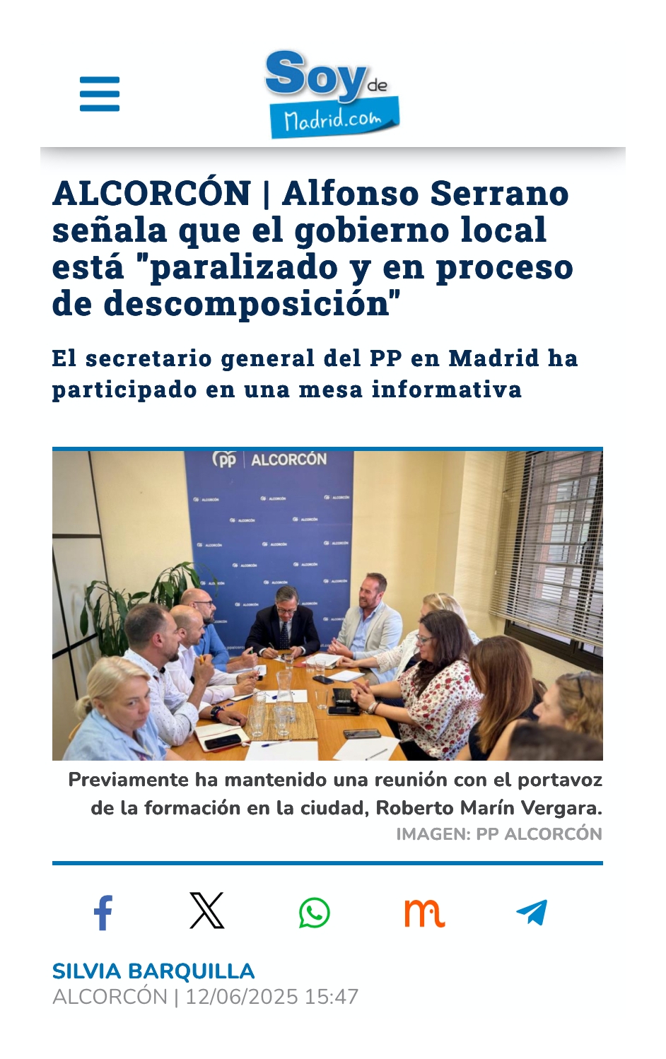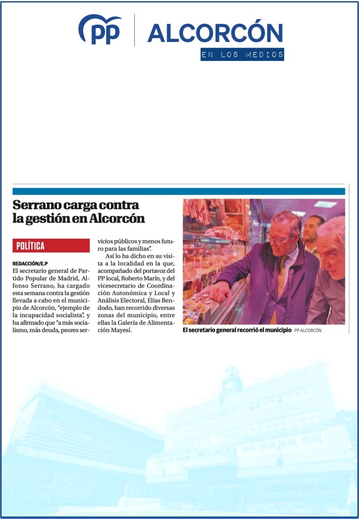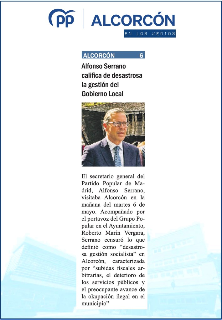 Alfonso Serrano en Alcorcón: “La ciudad está paralizada por un gobierno socialista en descomposición”