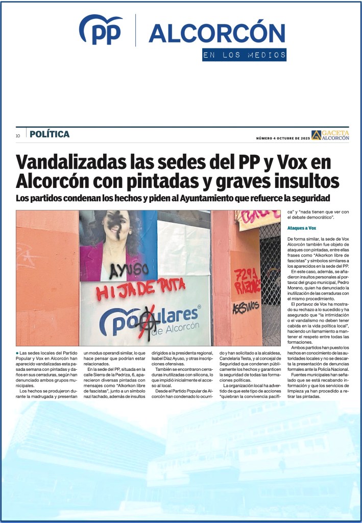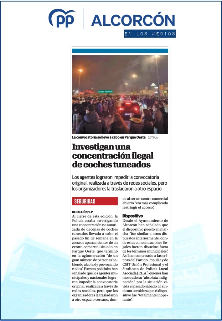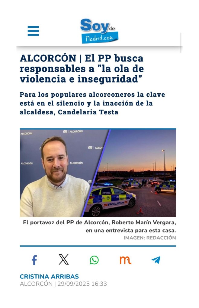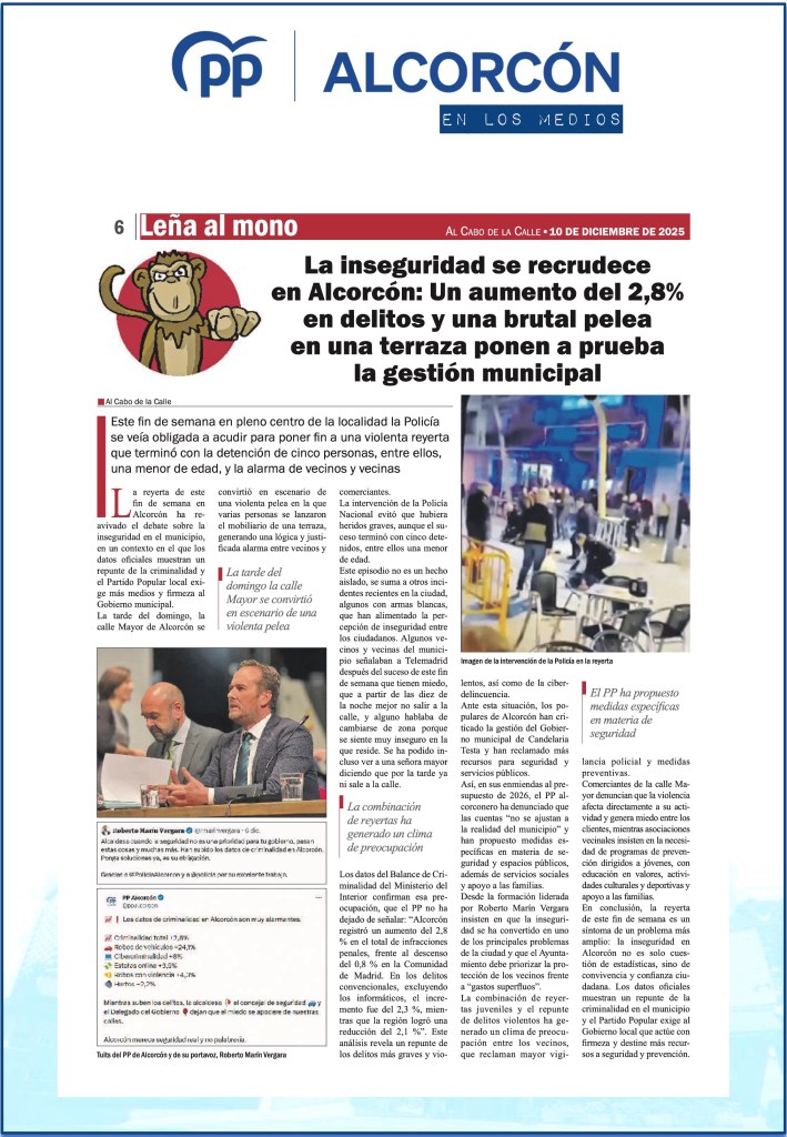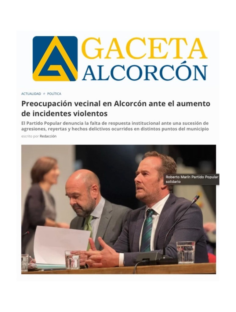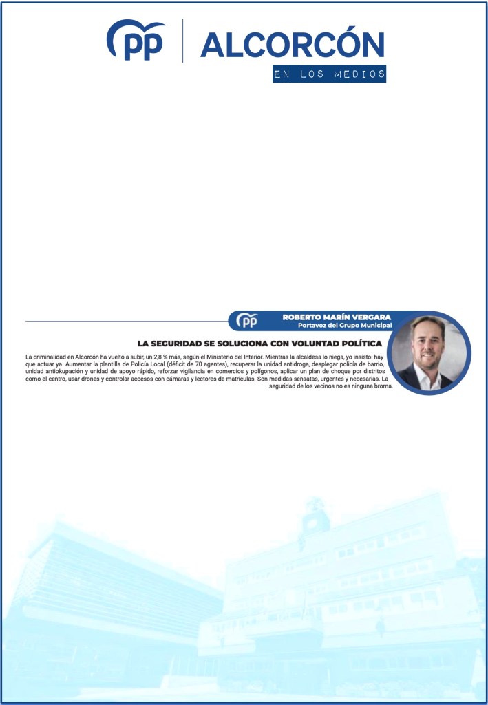 EL PP EXIGE EXPLICACIONES AL GOBIERNO POR LA GRAVE ESCALADA DE INSEGURIDAD EN ALCORCÓN