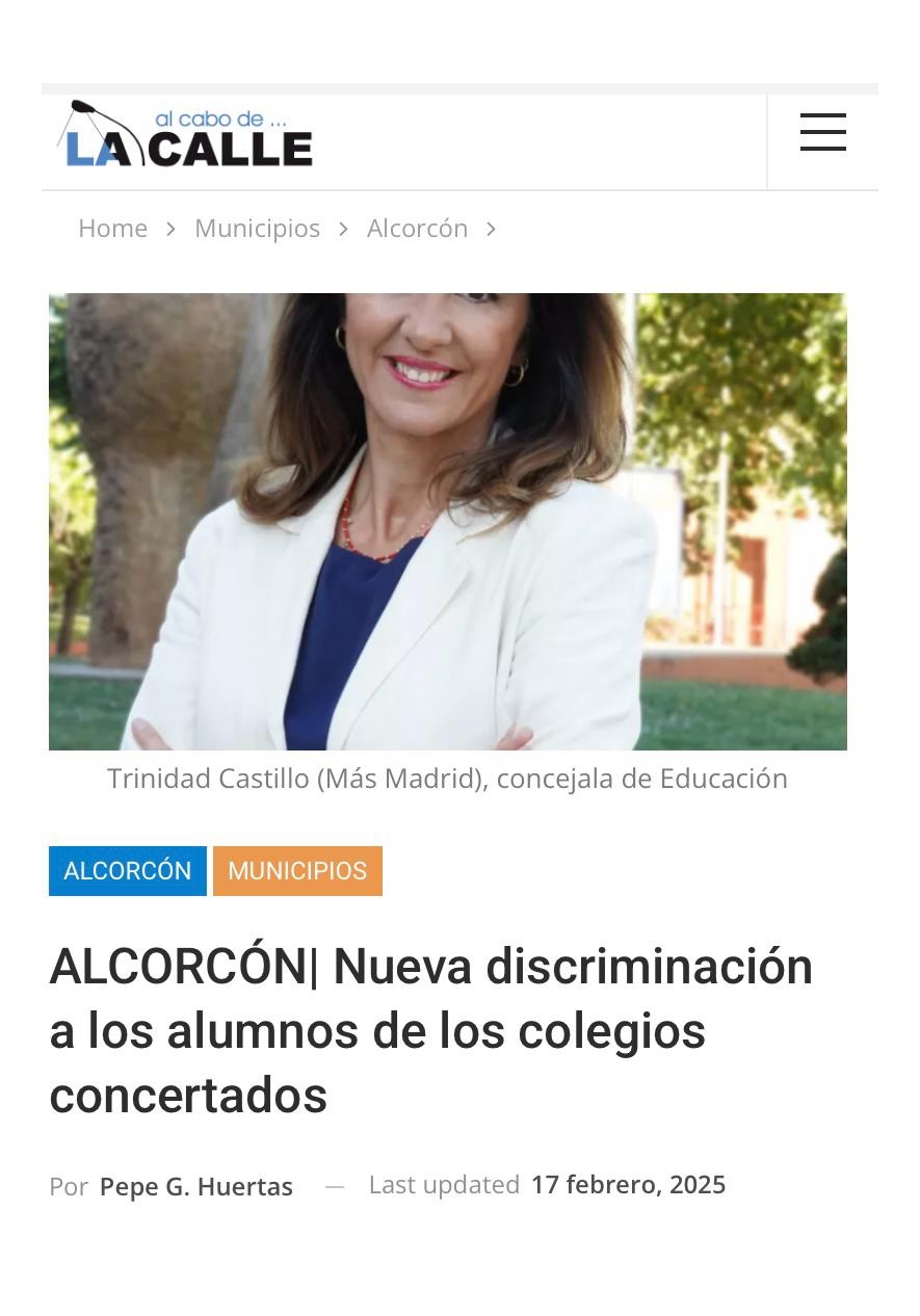 LA ALCALDESA DE ALCORCÓN DISCRIMINA A LOS ALUMNOS DE LOS COLEGIOS CONCERTADOS