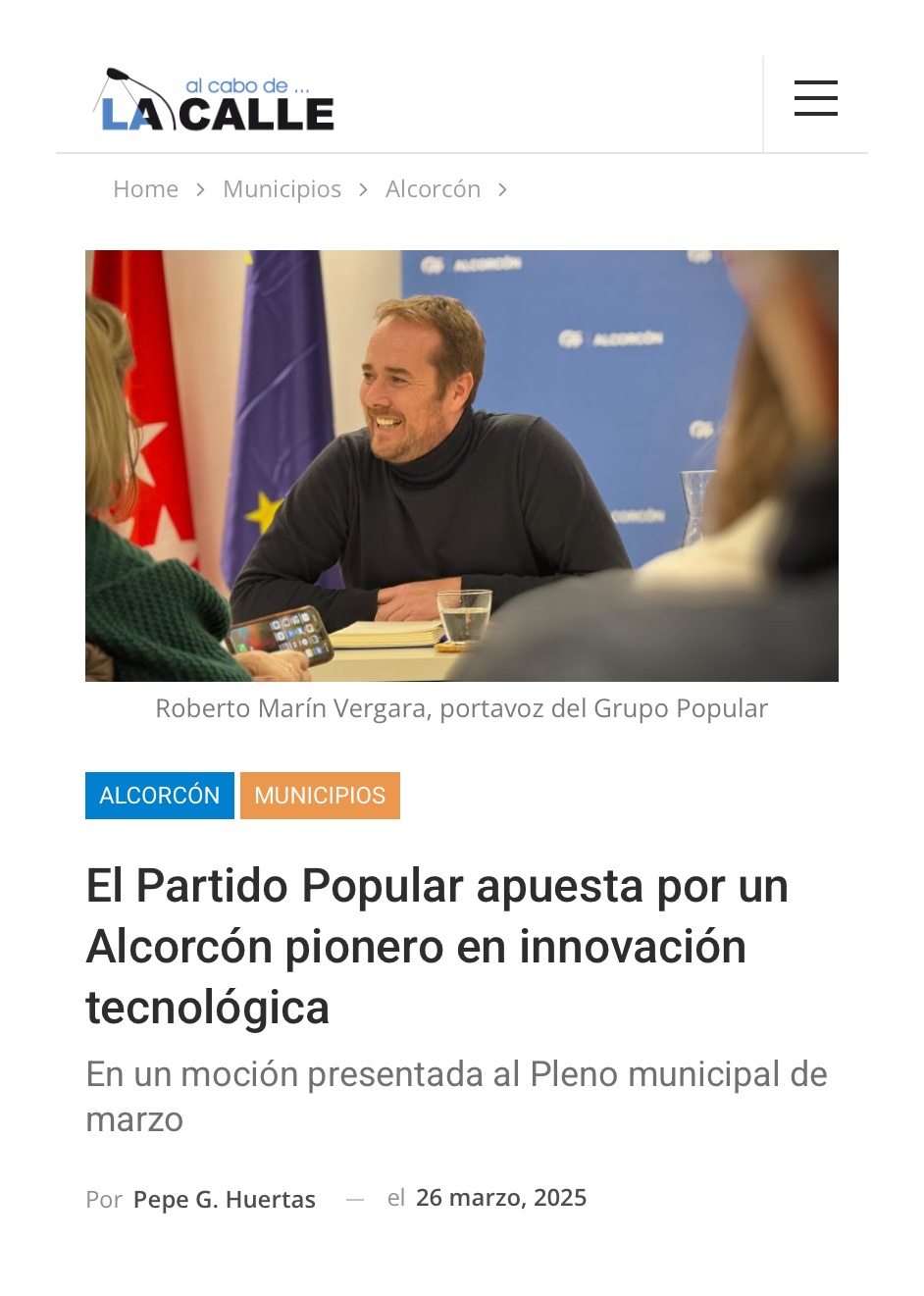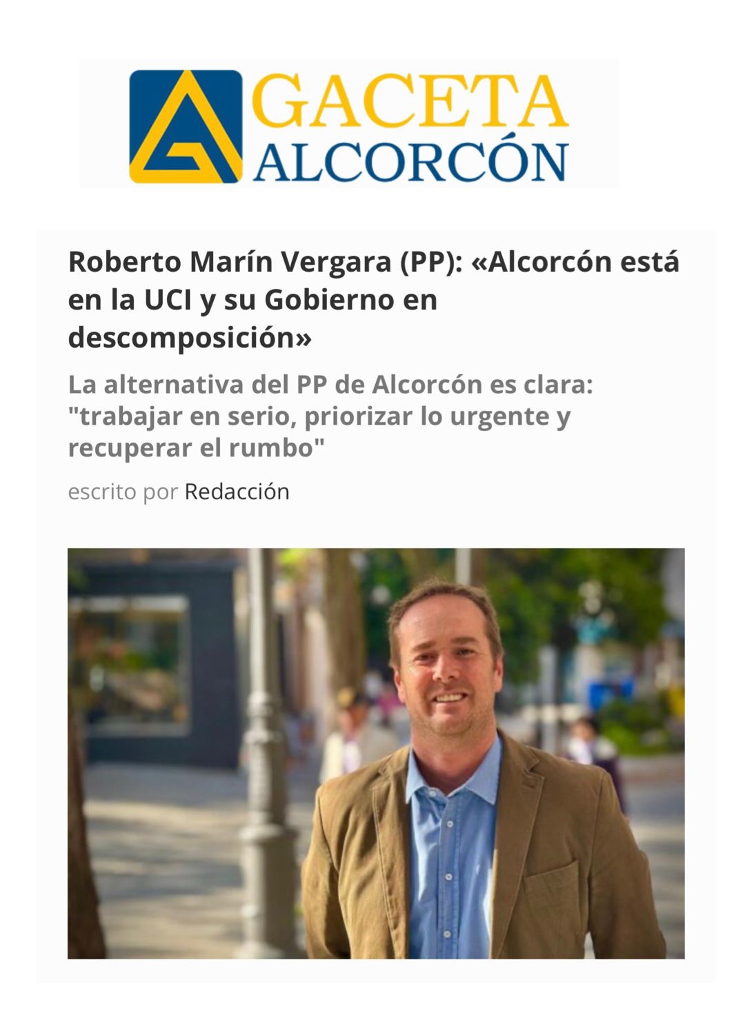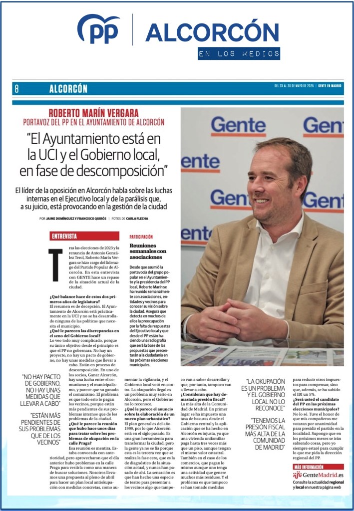Entrevista a Roberto Marín Vergara. Presidente PP Alcorcón. Comité ejecutivo PP Comunidad de Madrid