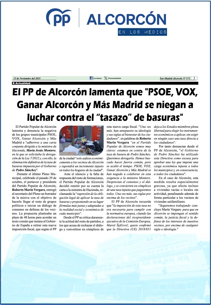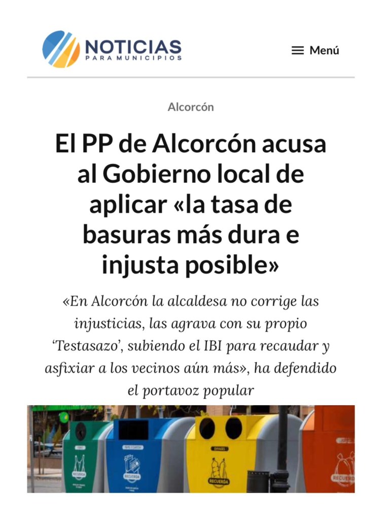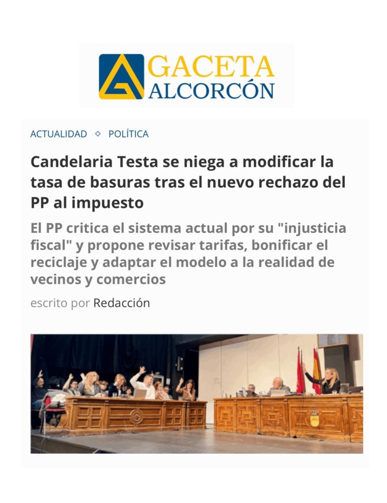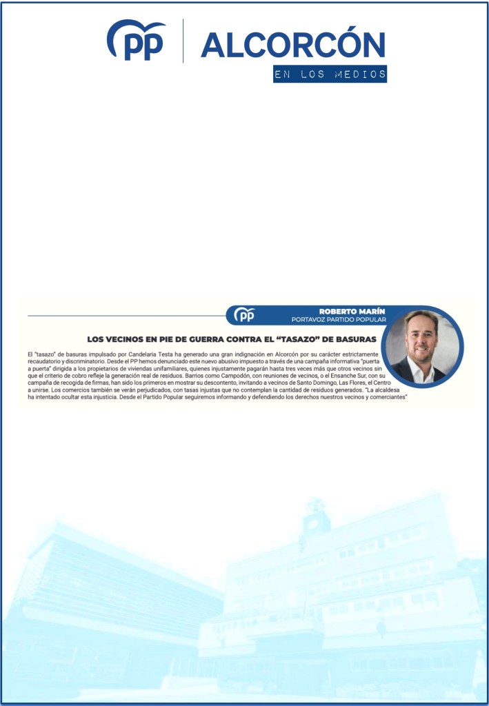 LOS VECINOS DE ALCORCÓN, EN PIE DE GUERRA CONTRA EL “TASAZO” DE BASURAS DE CANDELARIA TESTA