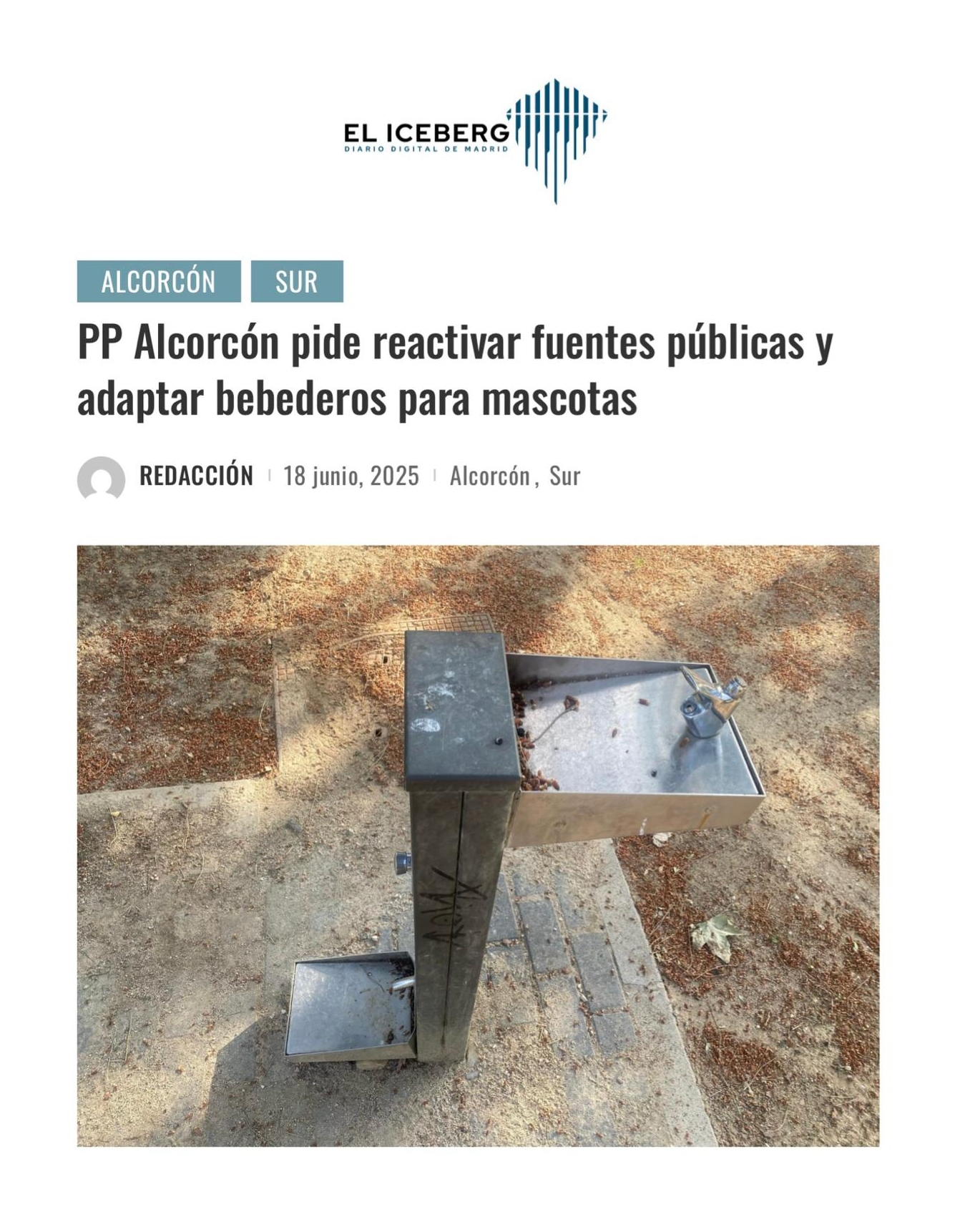 EL PARTIDO POPULAR DE ALCORCÓN PROPONE REACTIVAR LAS FUENTES PÚBLICAS E INSTALAR ADAPTACIONES PARA ANIMALES DOMÉSTICOS