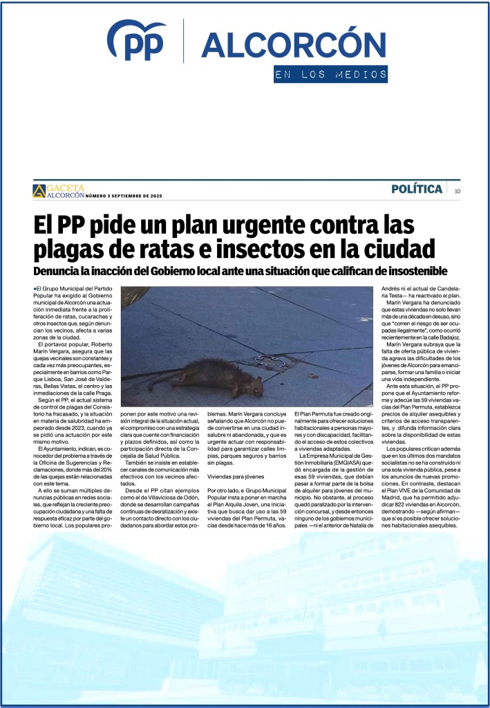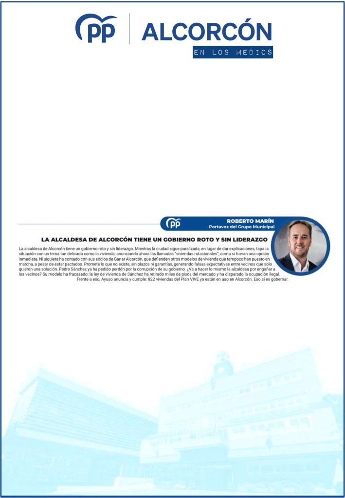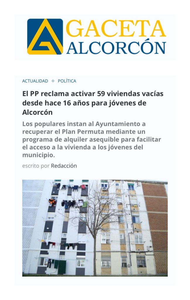MÁS DE 16 AÑOS VACÍAS: EL PP EXIGE PONER EN ALQUILER LAS VIVIENDAS DEL PLAN PERMUTA A LOS JÓVENES DE ALCORCÓN