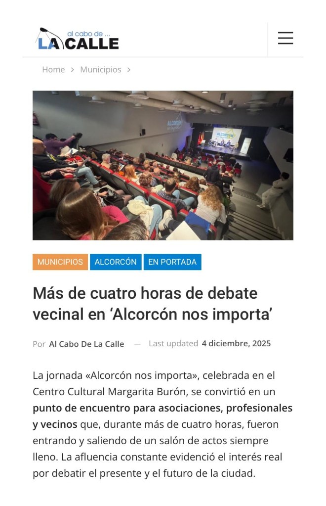 “Alcorcón nos importa”: un espacio de dialogo para iniciar la reconstrucción de Alcorcón