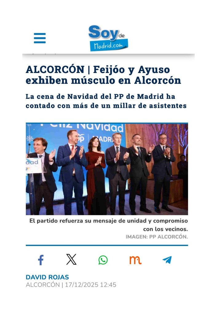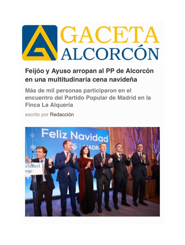 Feijóo y Ayuso eligen Alcorcón para la Cena de Navidad del PP de Madrid con más de un millar de asistentes